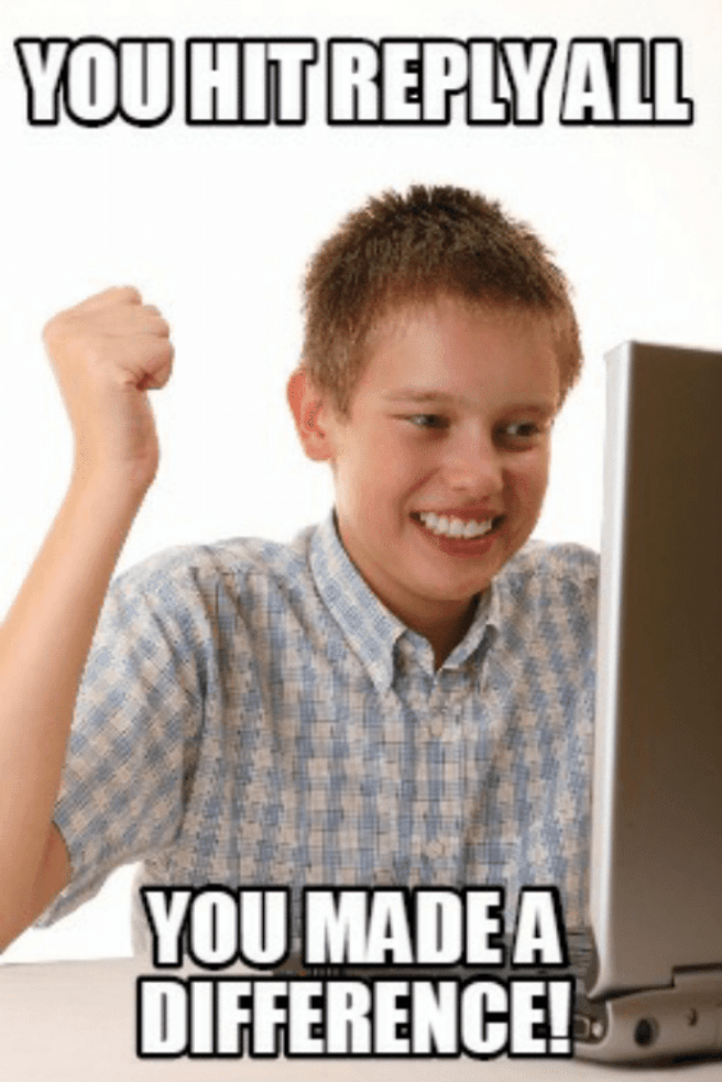 If this sets the tone for the school year, I think we’re going to see the email bar being lowered. We already suffer from something else I like to call the circle jerk of reply’s.